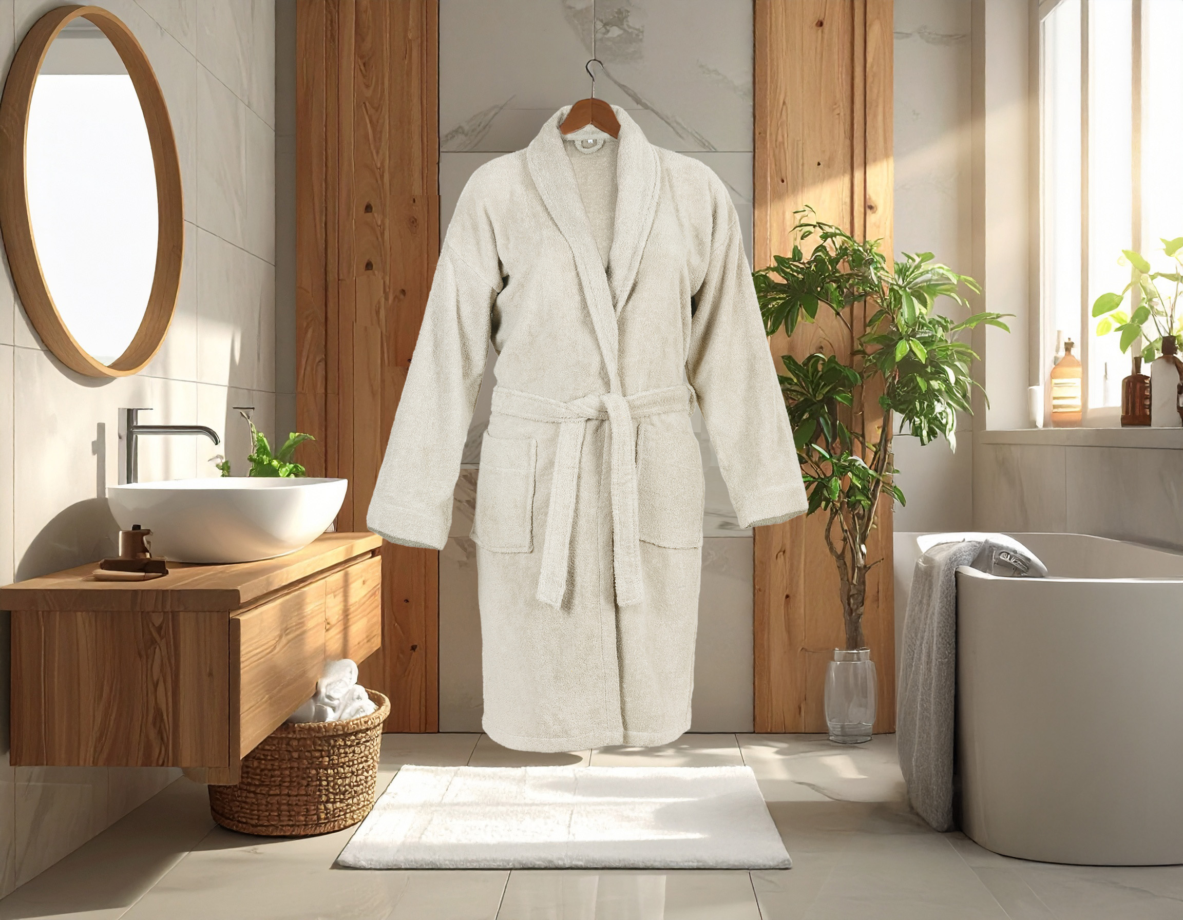 DoubleLife Badjas – 100% Katoen, waarvan 50% Gerecyclede Katoen – GRS Gecertificeerd – Maat L – Silver Grey