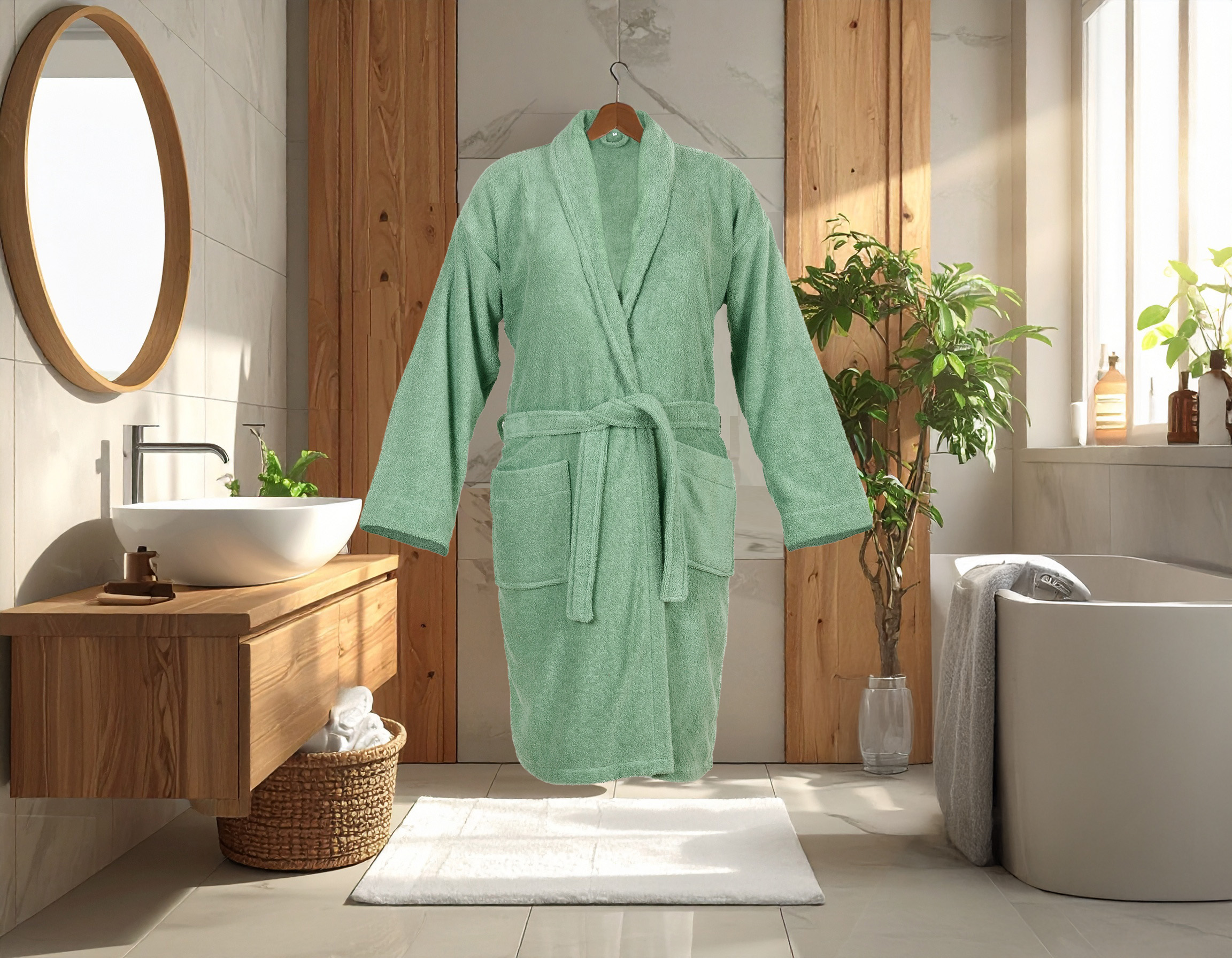 DoubleLife Badjas – 100% Katoen, waarvan 50% Gerecyclede Katoen – GRS Gecertificeerd – Maat M – Stone Green