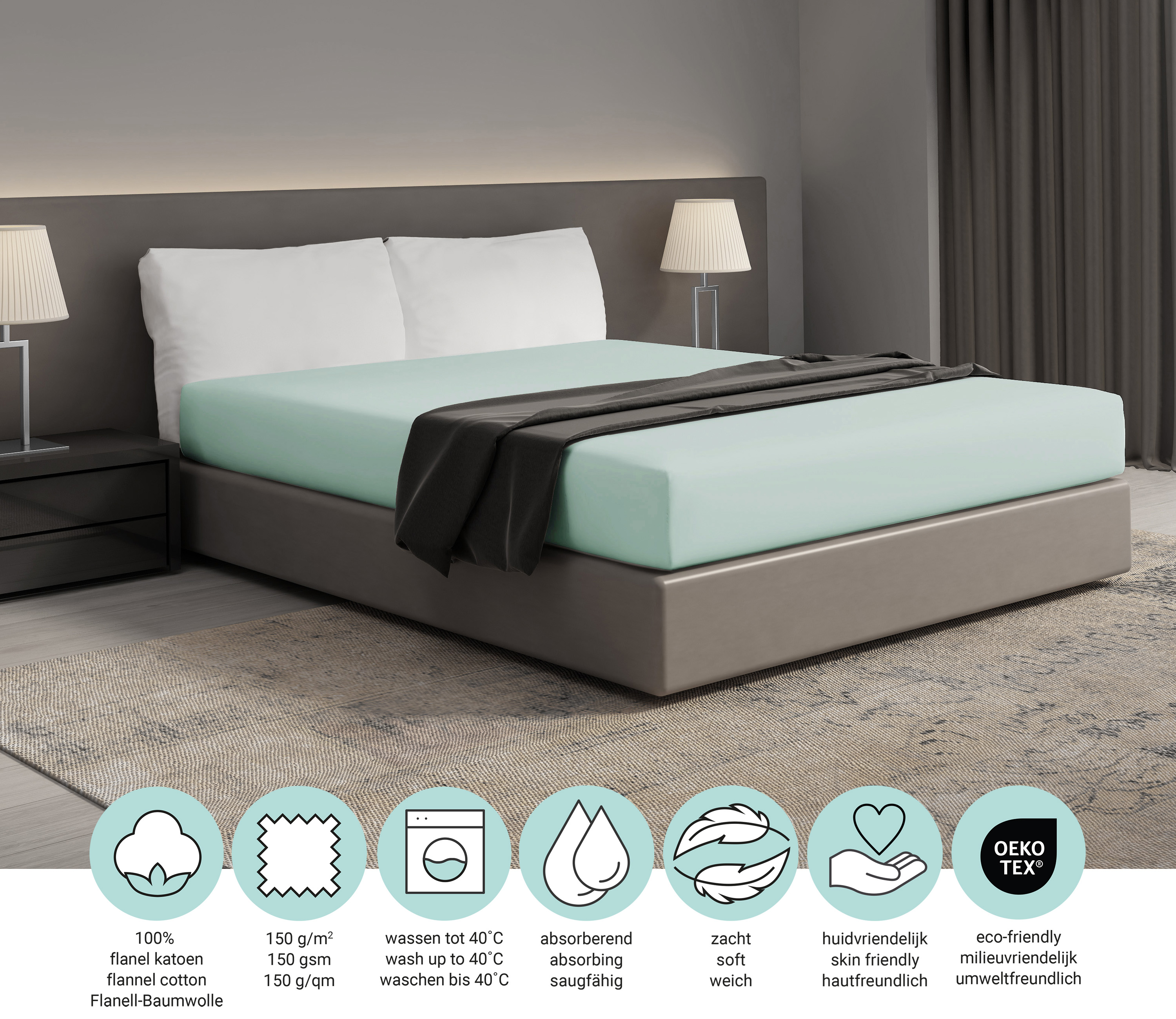Hoeslaken flanel – 100% katoen – 140×200 – mint