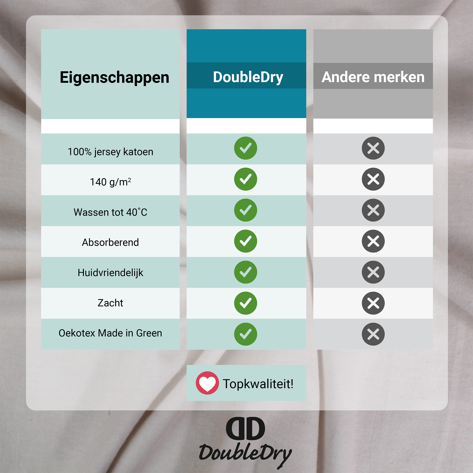 Geniet van een heerlijke nachtrust met het DoubleDry Jersey hoeslaken in een prachtige licht beige kleur. Dit eenpersoons hoeslaken (90×200 cm) is gemaakt van 100% zacht jersey katoen en voelt heerlijk aan op de huid. Dankzij het rondom elastiek blijft het hoeslaken perfect op zijn plaats, de hele nacht lang. Zeg maar dag tegen verschuivende hoeslakens!